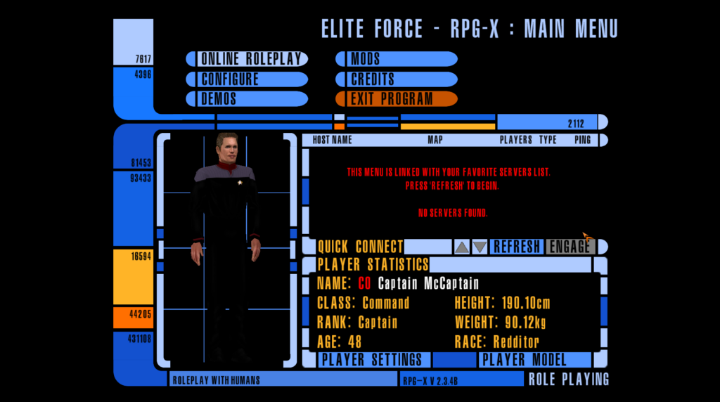 You see, that’s how it worked. Outside of scheduled, planned roleplay sessions – some featuring a serialised storyline playing out across one session a week in the same timeslot, just like the TV shows – any player could join a server and lay claim to the CO spot. In the majority of cases, this meant that this player was volunteering to be the story-lead for the server. They would ‘whisper’ to other officers with prompts to move their story along. For example, they could whisper to the Operations Officer that their ship was being hailed by an alien vessel. The OPS officer would then announce this, with room to improvise, and everyone would react accordingly. One great big revolving wheel of ‘yes, and’ as all good things are.